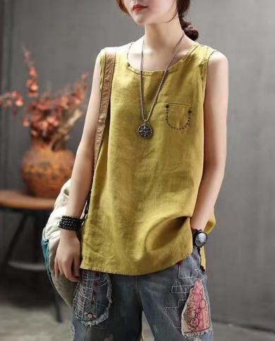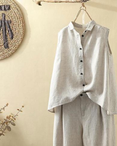 Summer Style Women Turndown Collar Sleeveless Linen Tank Tops Allmatched