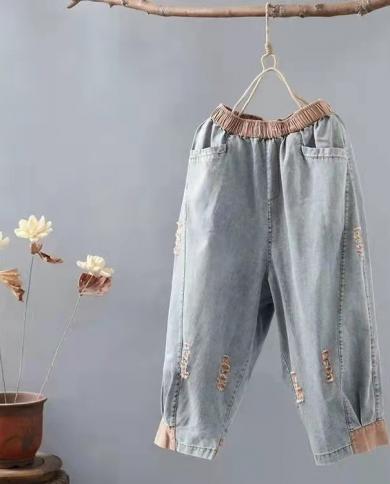 2022 Spring New Arts Style Women Elastic Waist Loose Jeans