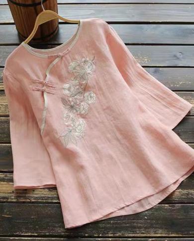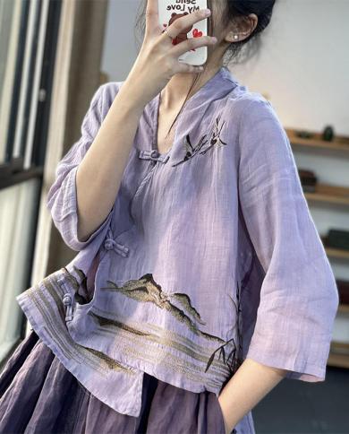 2022 Summer New Arts Style Women 34 Sleeve Loose V