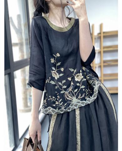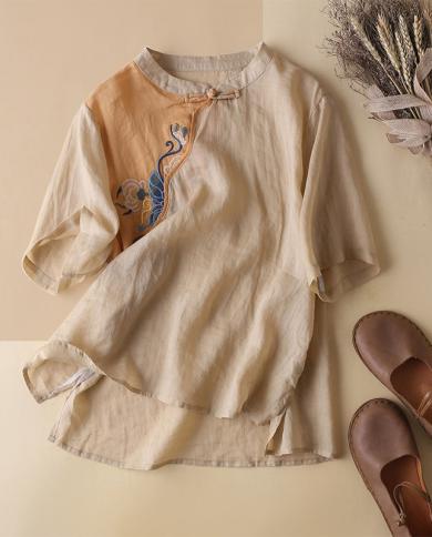 2022 Summer New Arts Style Women Half Sleeve Oneck Loose