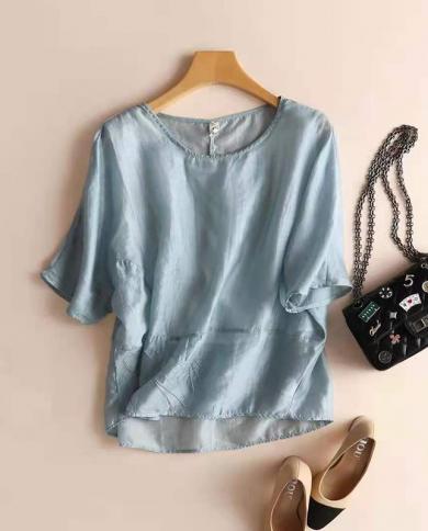2022 Summer New Arts Style Women Short Sleeve Turndown Collar