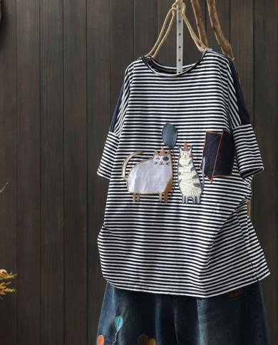 2022 Summer New Arts Style Women Short Sleeve Cotton Loose