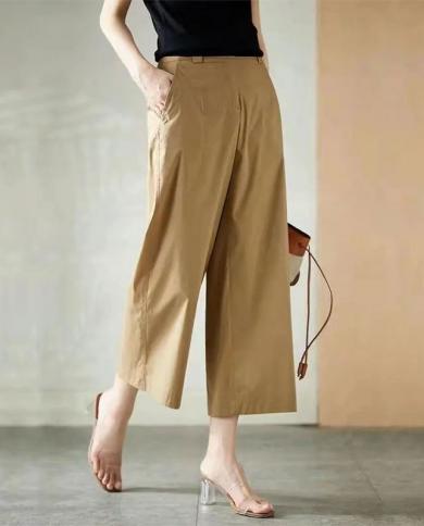 2022 Spring New Arts Style Women High Waist Khaki Cotton