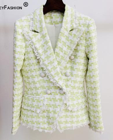 High Quality Fall Winter Small Fragrance Tweed Coat Women Vintage