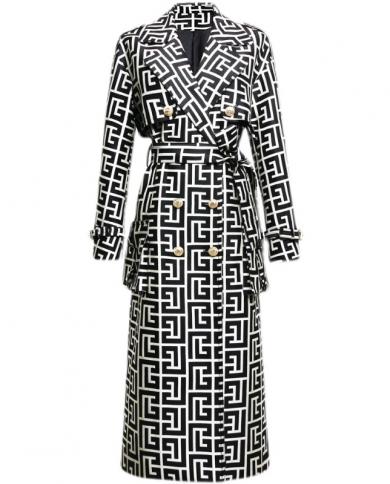 Black Plaid Trench Coat Women 2022 Autumn Winter Long Coat