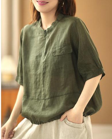 Summer New Arts Style Women Loose Casual Solid Cotton