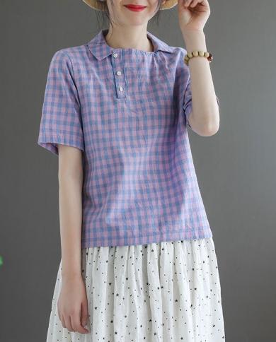 Summer Style Women Short Sleeve Loose Turndown Collar Tshirt Allmatched
