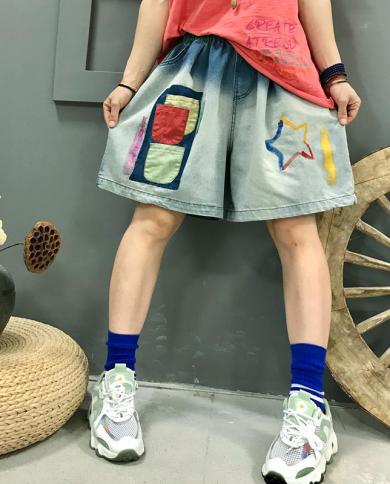 2022 Summer New Arts Style Women Elastic Waist Loose Knee