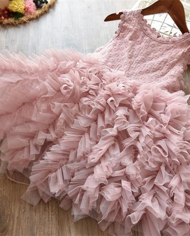 Girls Lace Dress Tutu Fluffy Cake Smash Outfits Elegant Princess