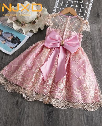 One Year Baby Girls Birthday Baptism Princess Dresses Kids Summer