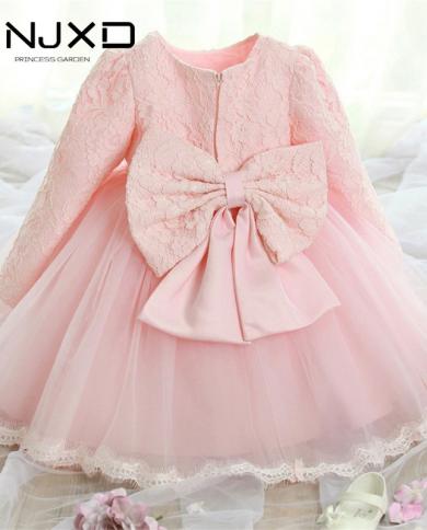 Baby Girl Pink Dress Elegant Princess Dress Winter Long Sleeves