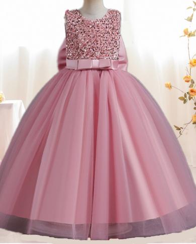 Wedding Dress For Girl Elegant Kids Flower Bow Princess Dresses