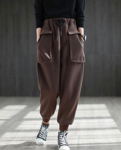 Winter New Arts Style Women Elastic Waist Thicken Warm Loose