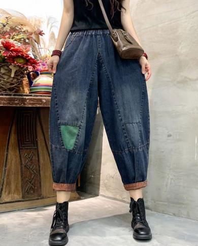 2022 Spring Autumn Women Elastic Waist Casual Cotton Denim Harem