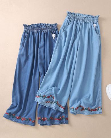 2022 Summer New Arts Style Women Elastic Waist Cotton Denim