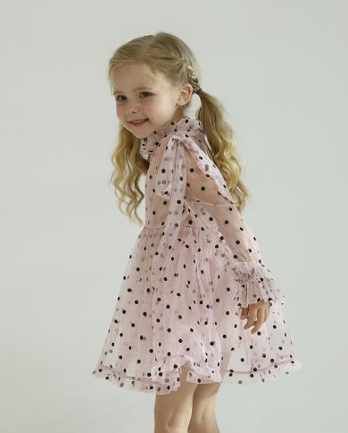 Flower Girls Long Sleeve Pink Dress Autumn Winter Casual Polka