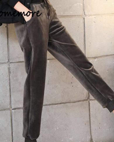 Comemore Women Thick Velvet Pants Autumn High Waist Loose Pants