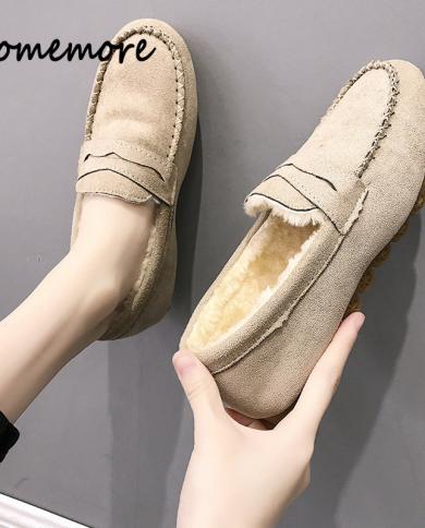 Comemore Womens Shoes Spring 2022 Winter Women Loafers Plush Slip
