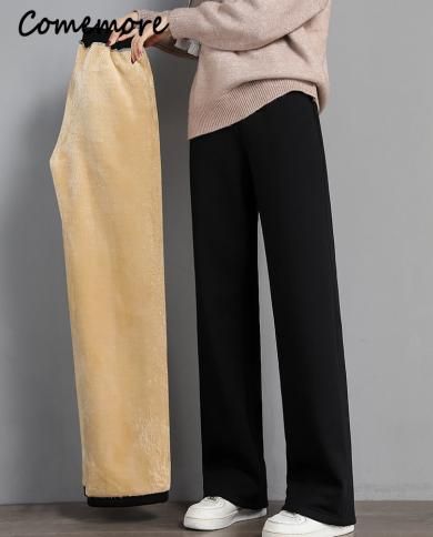 Comemore Women Warm Winter Pants Lambskin Cashmere Cotton Trousers High