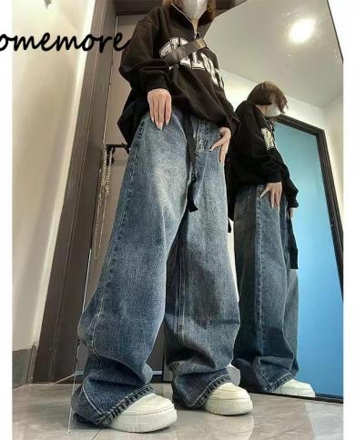Comemore Womens Harajuku Femme Jeans Dark Blue Brown High Waist