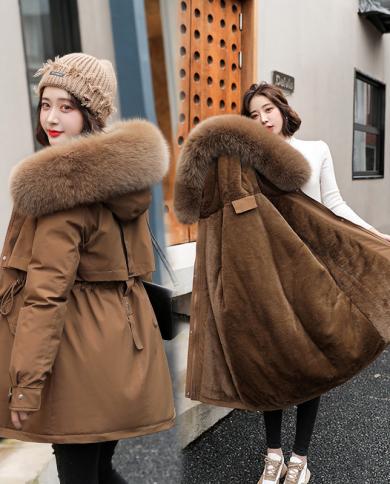 Women Parka Fashion Long Coat Wool Liner Hooded Parkas 2022