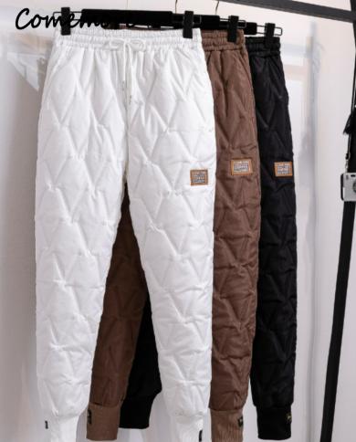 Comemore Winter Down Cotton Pants Women Thick Warm Pants Female
