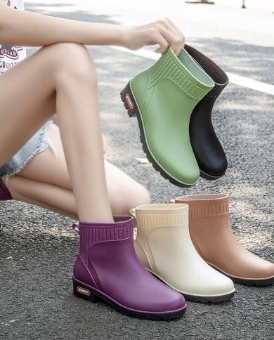 Comemore Waterproof Non Slip Ladies Rain Shoes Fashion Short Velvet