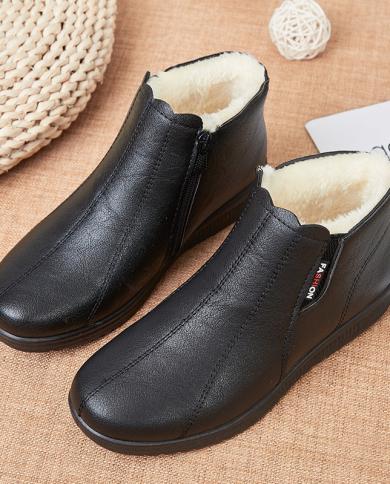 Comemore 2022 Womens Short Leather Boots Ladies Furry Orthopedic Shoes