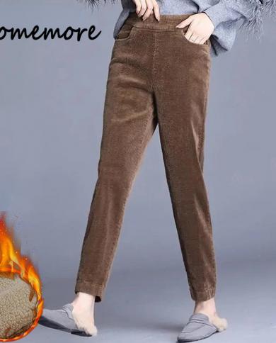 Comemore Casual Elastic High Waist Warm Pantalones Thicken Fleece Lined