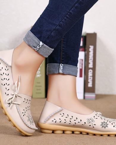 Comemore New Summer Soft Bottom Leather Shoes Elderly Flat Hollow