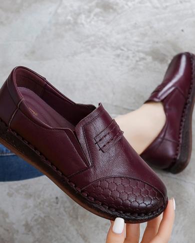 Comemore Fashion Women Shoes Elderly Leather Loafers Women Casual
