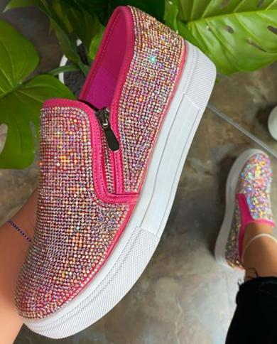 Comemore New Women Flat Loafers Woman Rhinestone Shoes Female Luxury