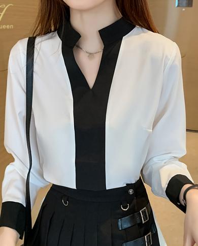 H Han Queen New Arrival Vneck Contrast Shirt Women Blouse