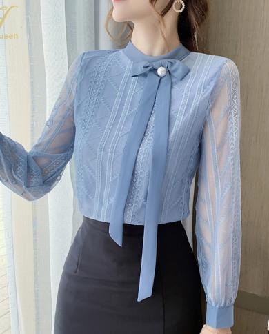 H Han Queen New Lace Women Blouses Laceup Loose Shirt