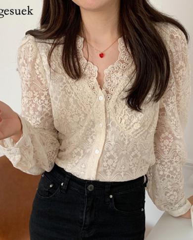 Womens Shirt Fashion Casual Elegant Shirts Female Autumn Lace