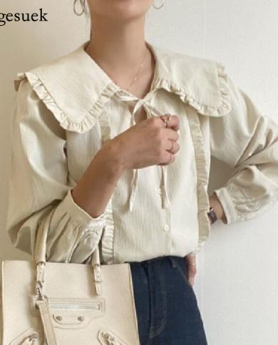Sweet Cotton Women Shirt Tops Ruffles Vintage Peter Pan