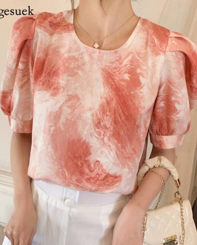 Summer New Retro Puff Sleeve Tops Women Fashion Loose Ink
