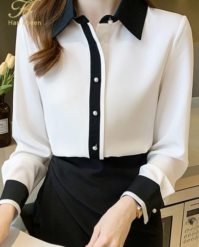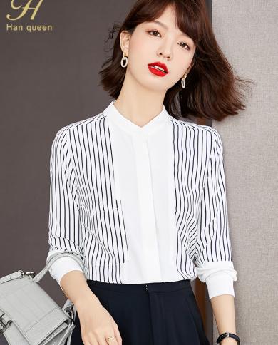 H Han Queen Autumn Blusas Simple Office Chiffon Blouse Female