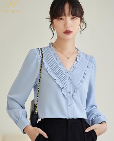H Han Queen 2022 Autumn Shirt Women Ruffles Vintage Work