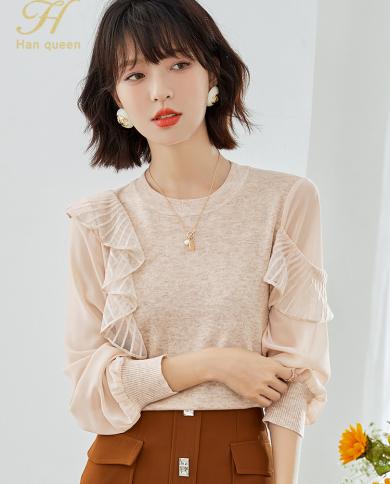 H Han Queen Autumn 2022 Office Shirt Womens Blouses Lace