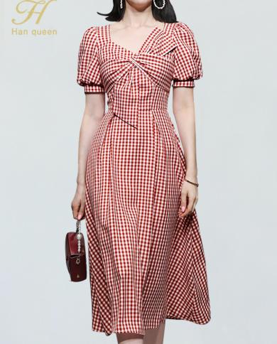 H Han Queen New Summer Split Aline Dresses Women Midcalf