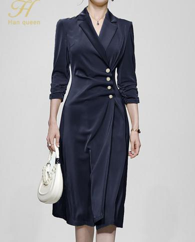H Han Queen Autumn New Ol Satin Vintage Vestidos Simple