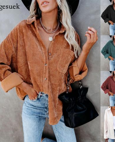 Fashion Vintage Corduroy Woman Blouse Jacket Strip Oversized Shirt Women