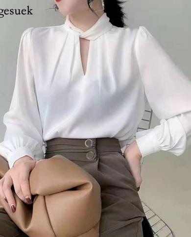 Autumn Fashion Satin Blouse Women Long Lantern Sleeve Shirt Chic