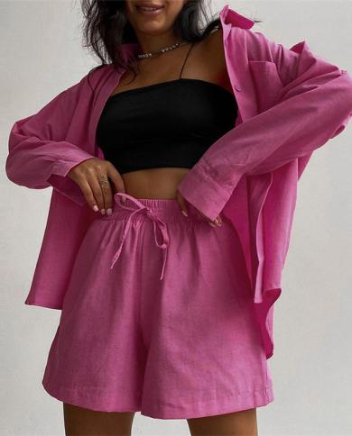 Straight Shorts Two Piece Set Casual Homewear Set Blouse Trousers