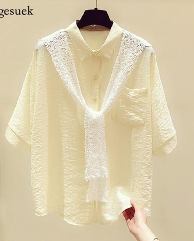 Short Sleeve Solid White Women Shirts Blouses Summer New Button