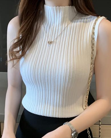 New Summer Fashion Knitted Blouse Women Solid Thin Sleeveless Slim