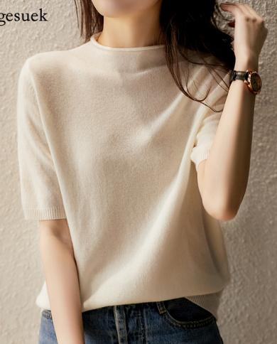 New Casual Knitted Shirt Tops Womens Clothing Summer Solid