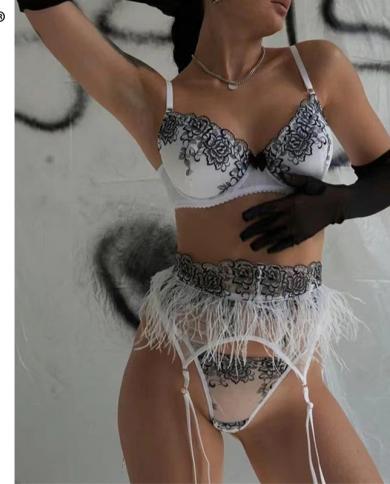 Ellolace Fancy Lingerie For Women Luxury Feather Lace Up Garter