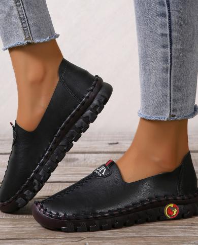 Mother Comfortable Leather Summer Shoes Women Black Flats Soft Bottom
